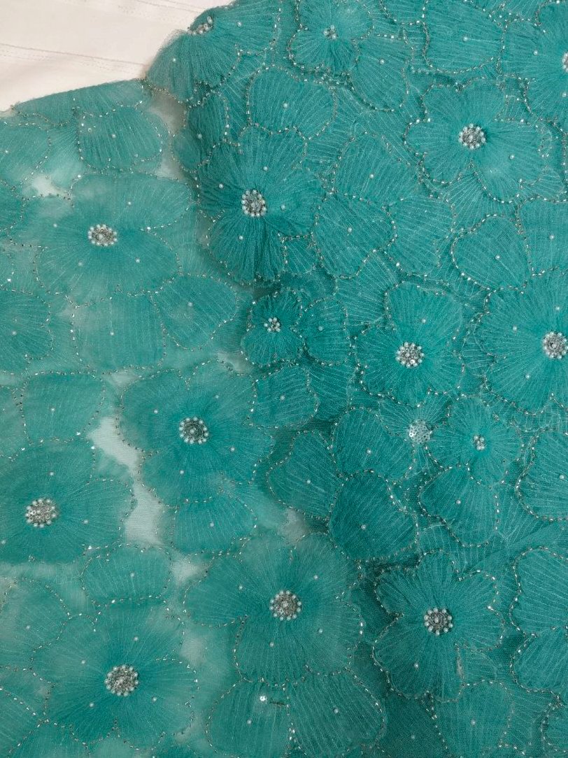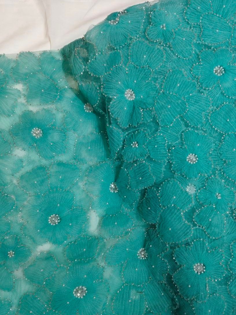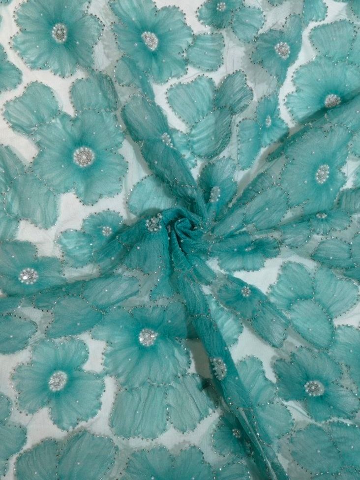 Beautiful floral ribbon work premium fabric