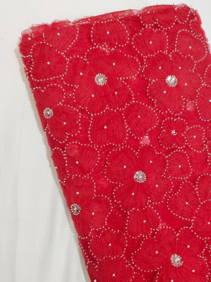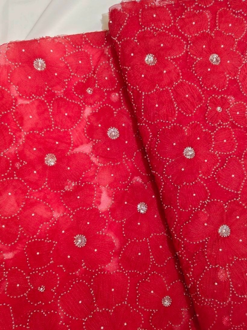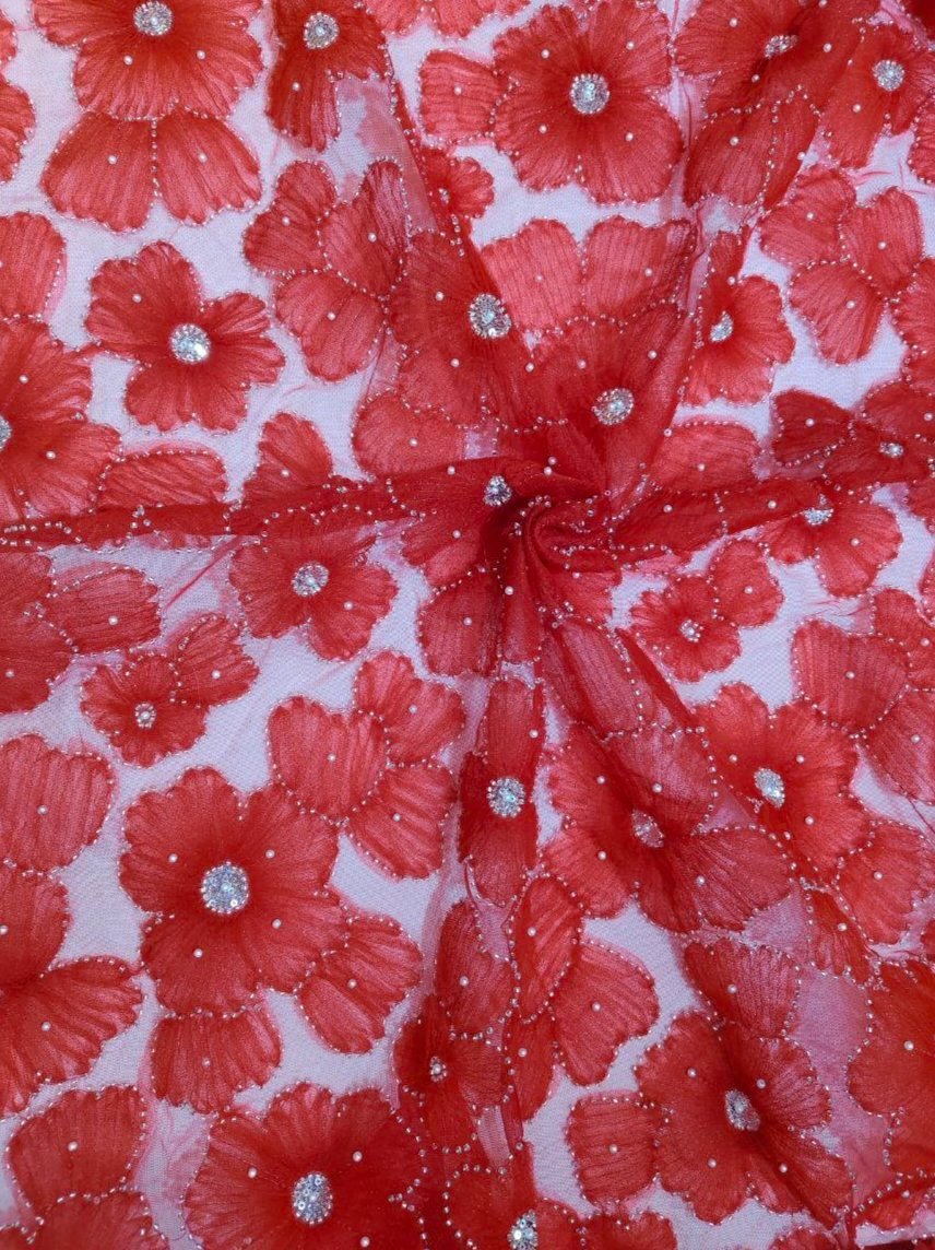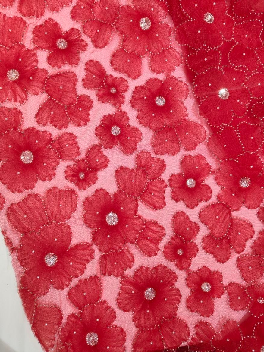 Beautiful floral ribbon work premium fabric